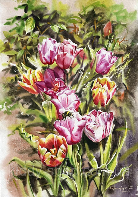 Алмазна вишивка. Картина на підрамнику "Тюльпани 2 Худ. Брандт" , розмір 40х50см